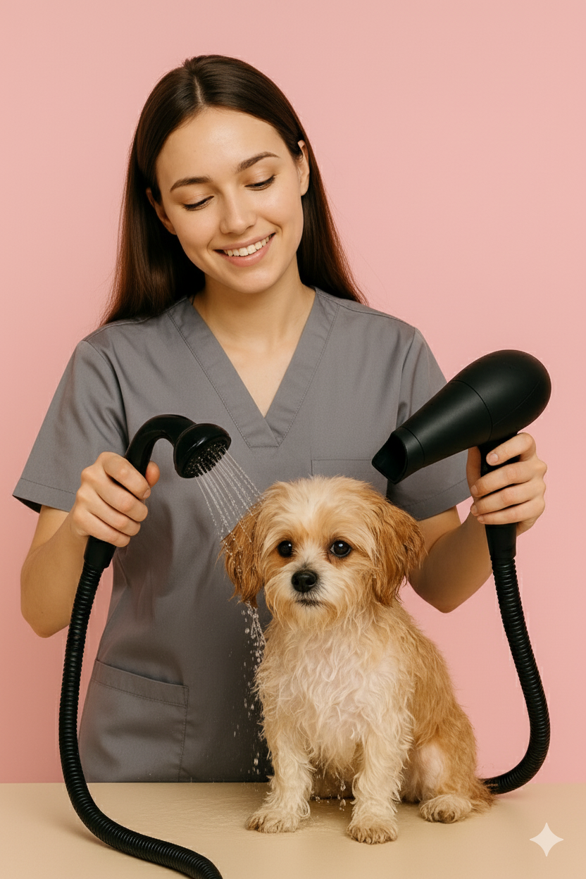 Cleaning and shampooing your pet to keep their coat fresh and free of dirt and odor.